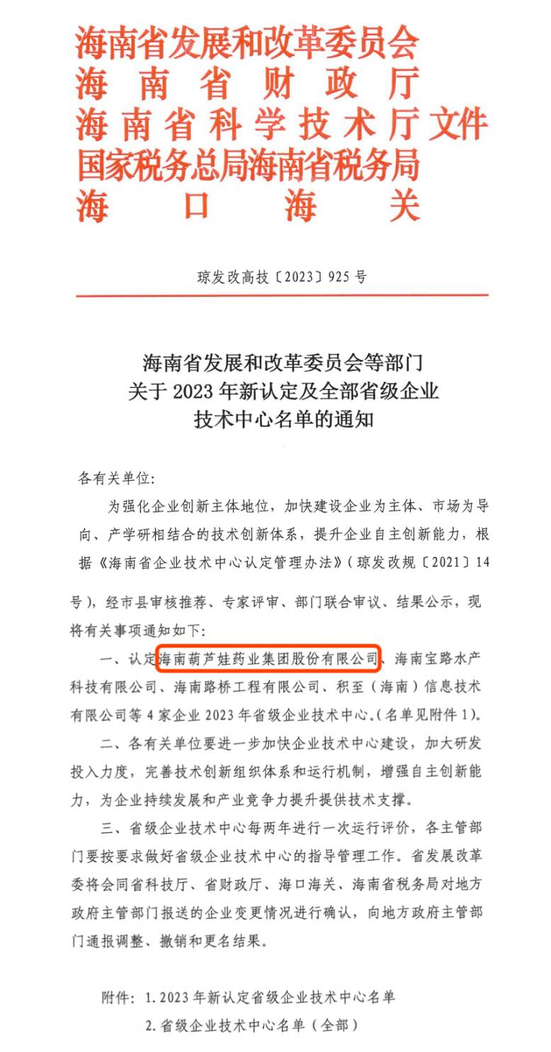近日,海南省发改委等多部门联合公布了《关于2023年新认定及全部省级企业技术中心名单的通知》,其中,海南星空电子药业集团股份有限公司成功通过评审,被认定为省级企业技术中心,是本次获批的4家企业之一。